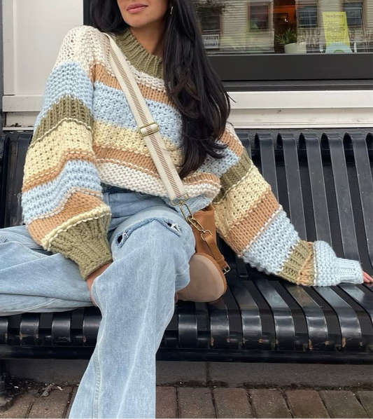 Coziest Striped Sweater - Yellow Combo