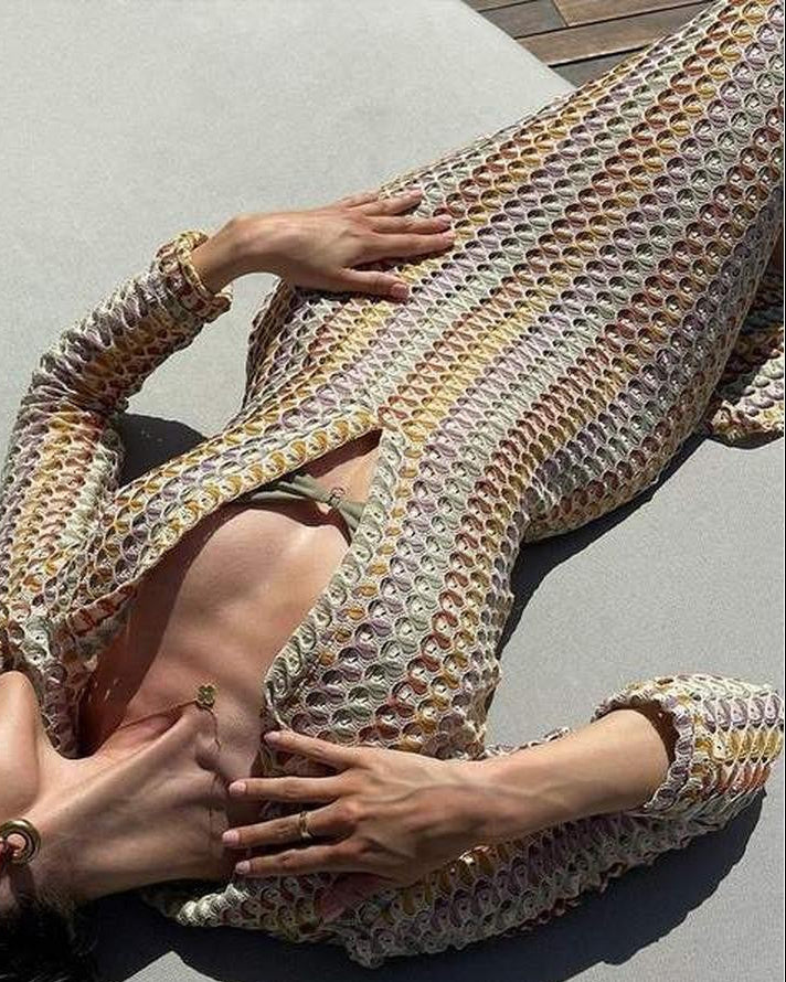 while side split details add a playful touch. Perfect as a bikini cover-up
