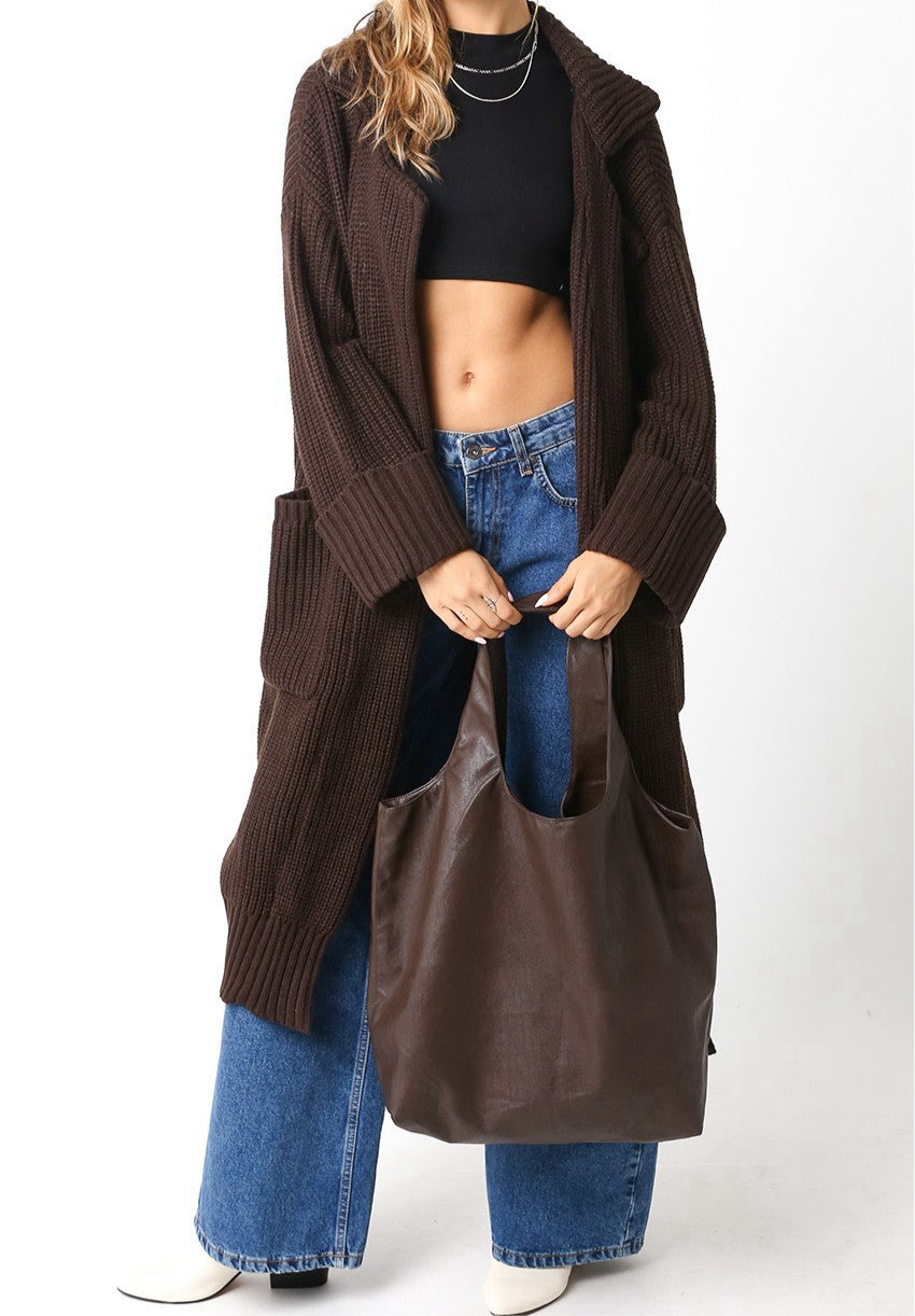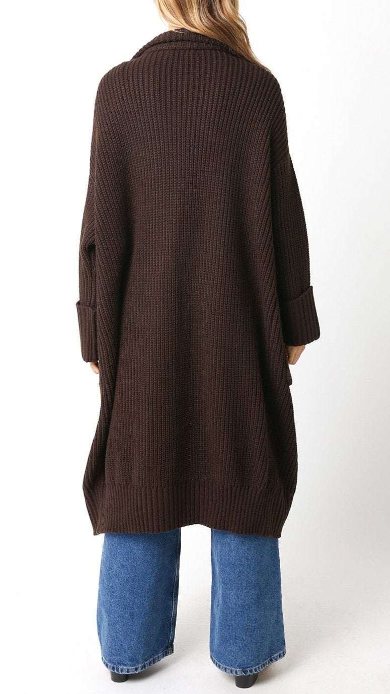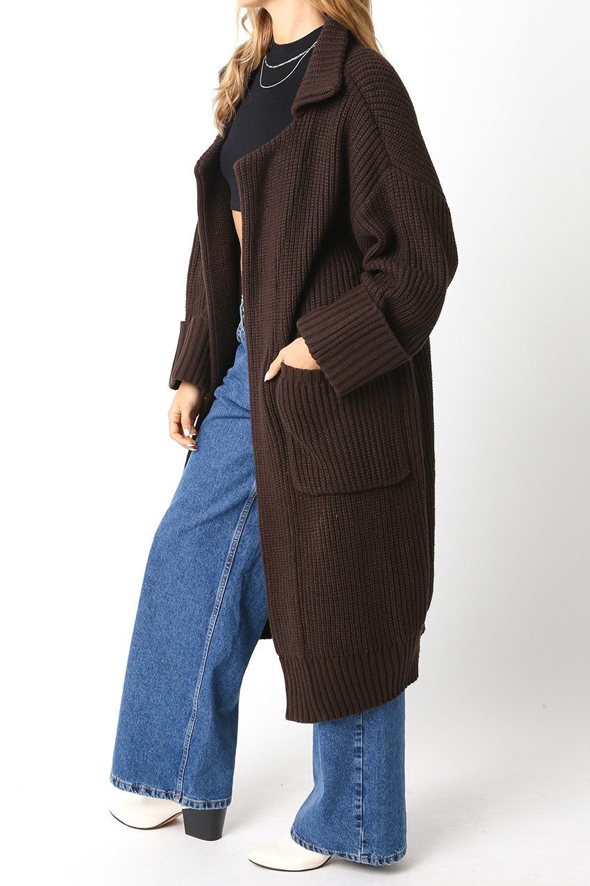 Stay cozy and chic with the Winter's Calling Cardigan. This full length cardigan is the perfect addition to your wardrobe, keeping you warm and stylish. With its thick, yet lightweight material, you can easily layer this cardigan over any outfit. Plus, the convenient pockets add functionality and flair. Available in a beautiful brown color. 100% Acrylic.